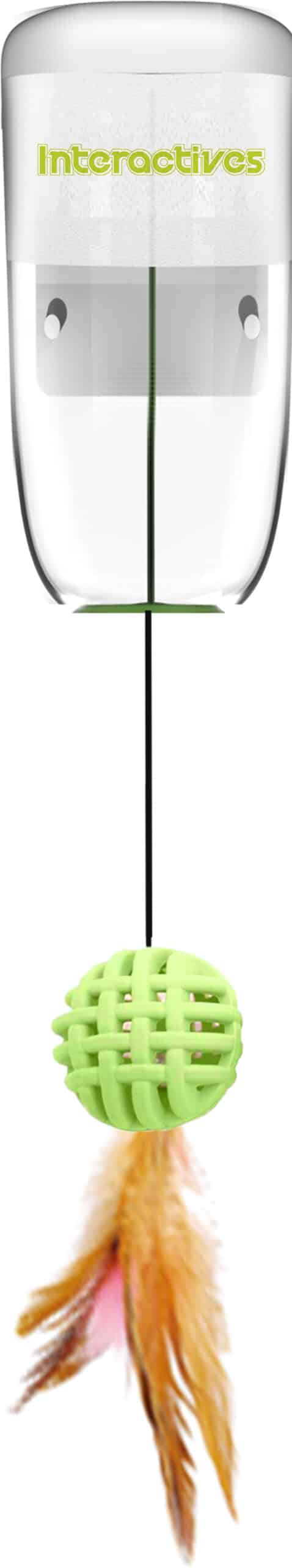 Deze dispenser beloont uw kat als het speeltje met veertje wordt gepakt en is eenvoudig aan vrijwel elke tafel te bevestigen.