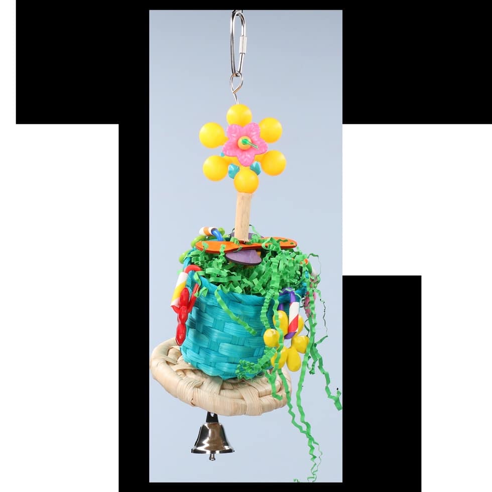 Het kan makkelijk in de kooi worden gehangen en zit boordevol leuke details, zoals bamboe en een belletje.
