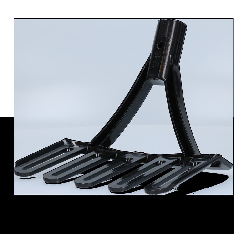 Deze hark is uit hoogwaardig polycarbonaat gemaakt. Dit is een zeer sterke, duurzame en slagvaste kunststofsoort. Hierdoor is deze hark geschikt voor stevige opruimklussen en onmisbaar in elke stal.