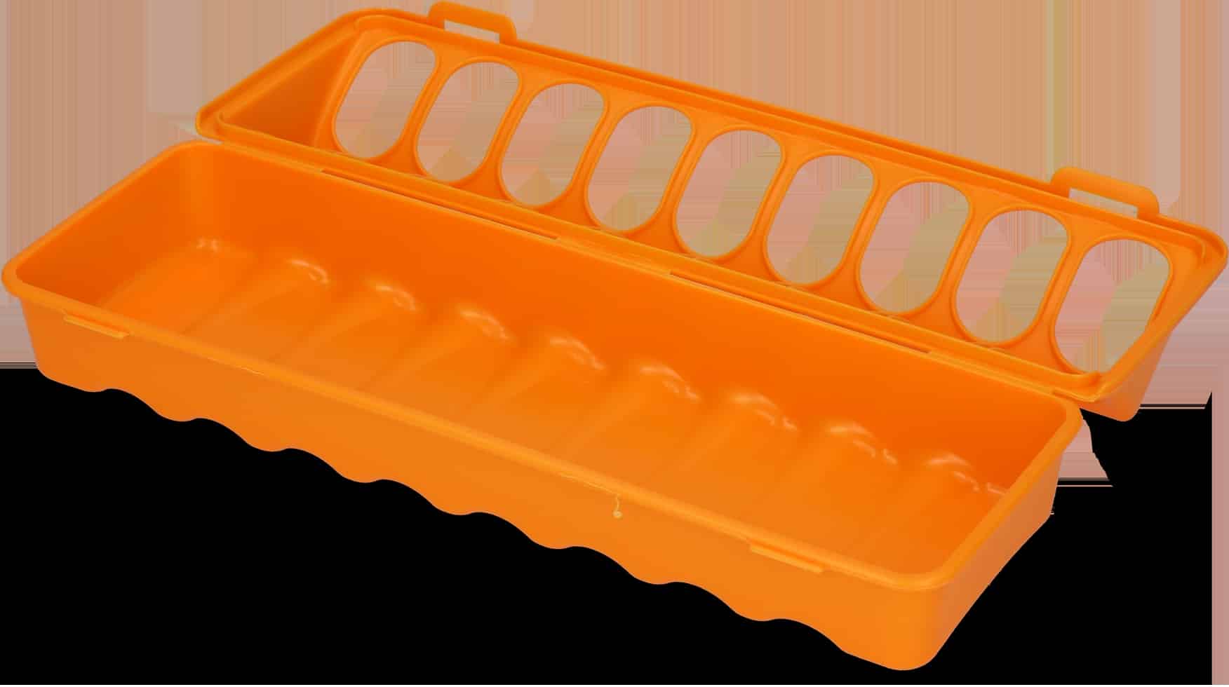 Voedertrog voor pluimvee met 18 vakken. Gemaakt van duurzaam materiaal.