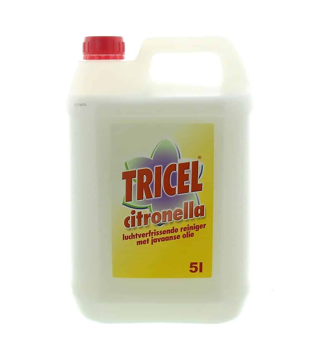Tricel Citronella is een reiniger op basis van javaanse olie. Effectief tegen ongewenste geuren.
